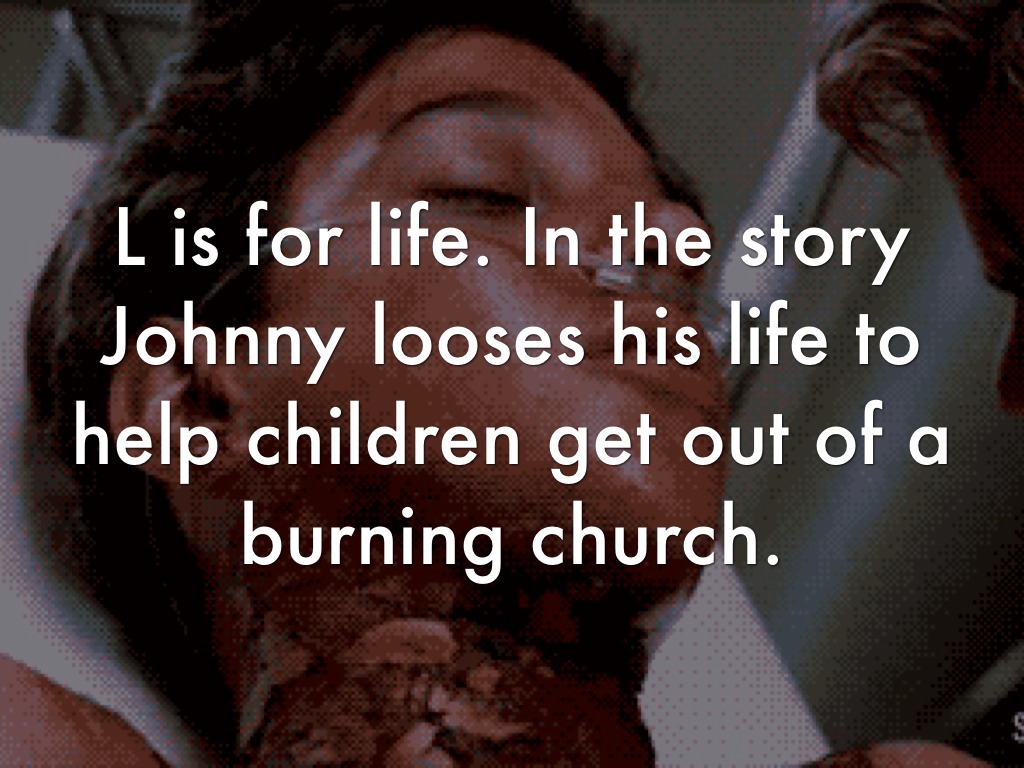 L is for life. In the story Johnny looses his life to help children get out of a burning church.