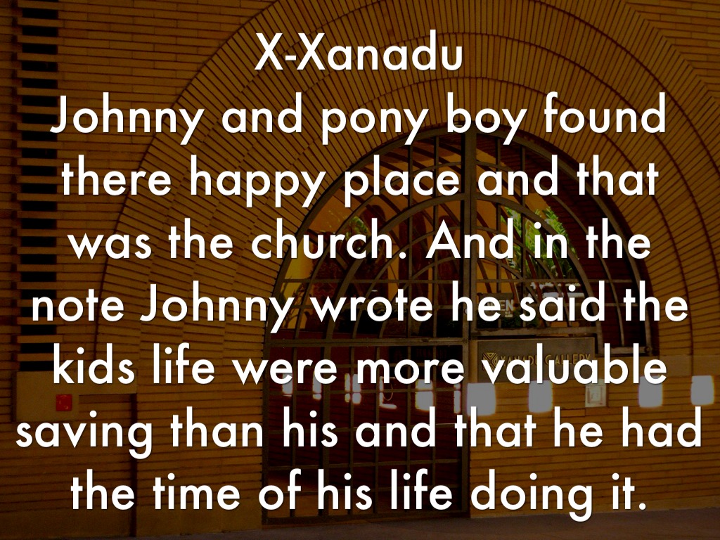 X-Xanadu Johnny and pony boy found there happy place and that was the church. And in the note Johnny wrote he said the kids life were more valuable saving than his and that he had the time of his life doing it.