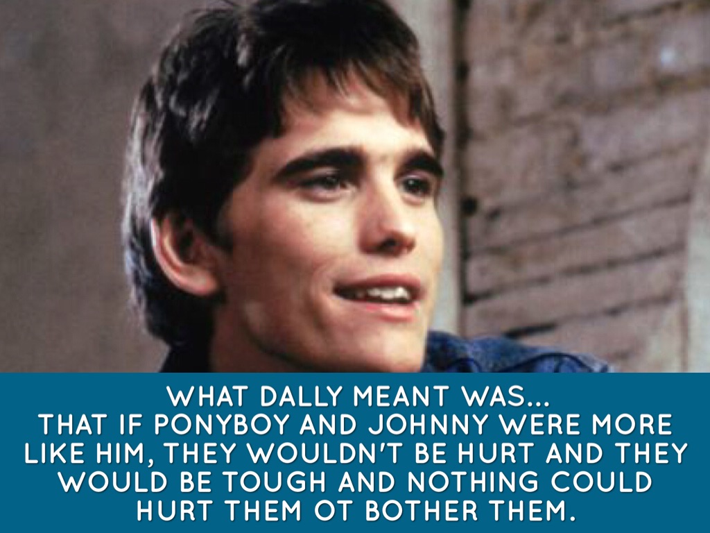 THAT IF PONYBOY AND JOHNNY WERE MORE LIKE HIM, THEY WOULDN'T BE HURT AND THEY WOULD BE TOUGH AND NOTHING COULD HURT THEM OT BOTHER THEM.