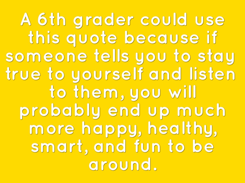 A 6th grader could use this quote because if someone tells you to stay true to yourself and listen to them, you will probably end up much more happy, healthy, smart, and fun to be around.