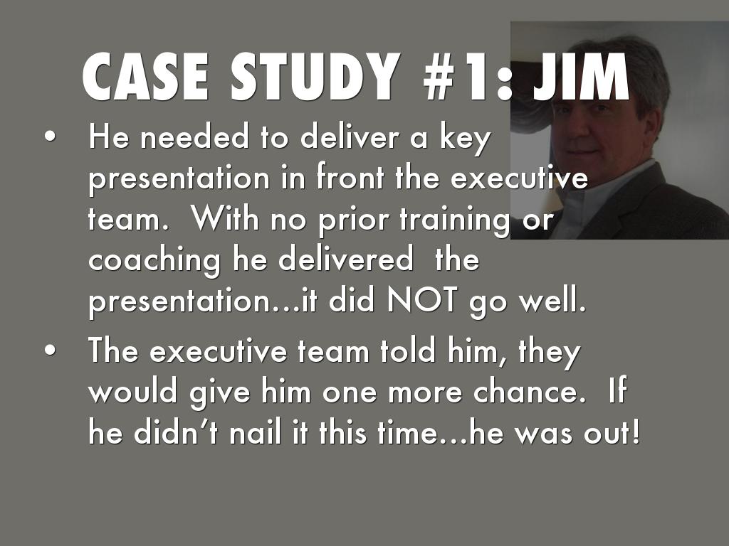 - He needed to deliver a key presentation in front the executive team. With no prior training or coaching he delivered the presentation…it did NOT go well.