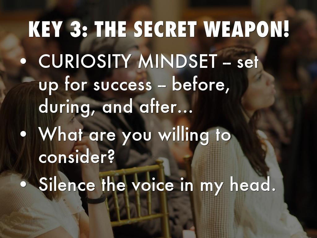 - CURIOSITY MINDSET -- set up for success -- before, during, and after...