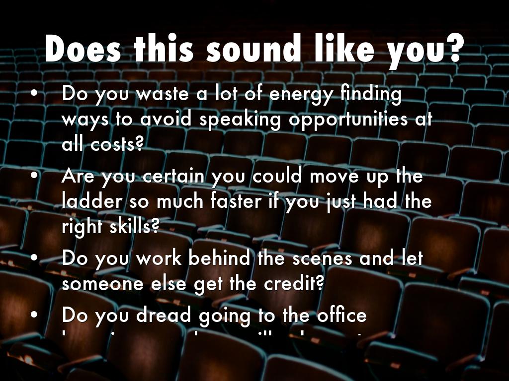 - Do you waste a lot of energy finding ways to avoid speaking opportunities at all costs?