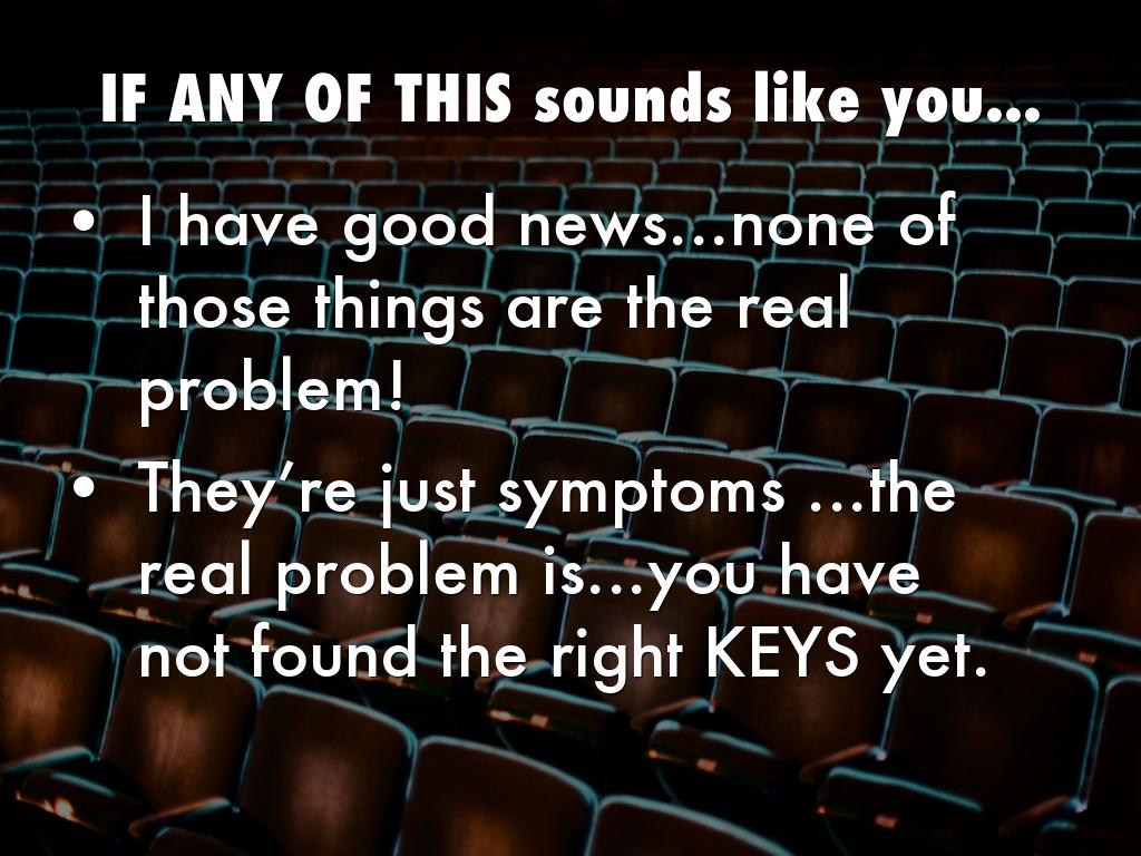 - They’re just symptoms …the real problem is…you have not found the right KEYS yet.