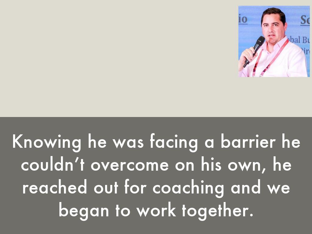 Knowing he was facing a barrier he couldn’t overcome on his own, he reached out for coaching and we began to work together.