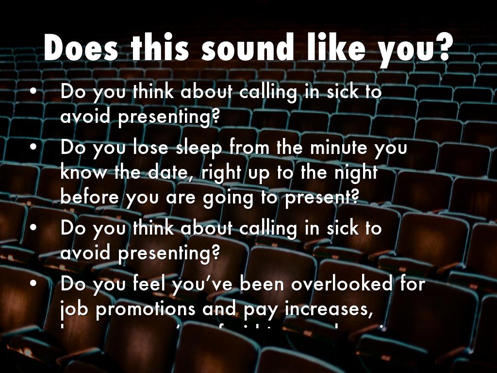 - Do you dread going to the office knowing your boss will ask you to present to senior management?