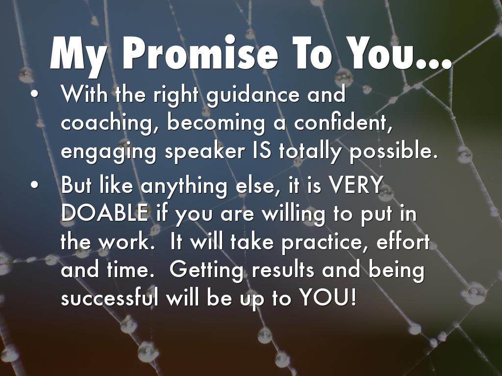 - With the right guidance and coaching, becoming a confident, engaging speaker IS totally possible.