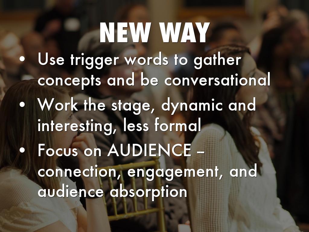 - Focus on AUDIENCE -- connection, engagement, and audience absorption