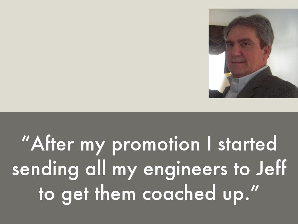 “After my promotion I started sending all my engineers to Jeff to get them coached up.”