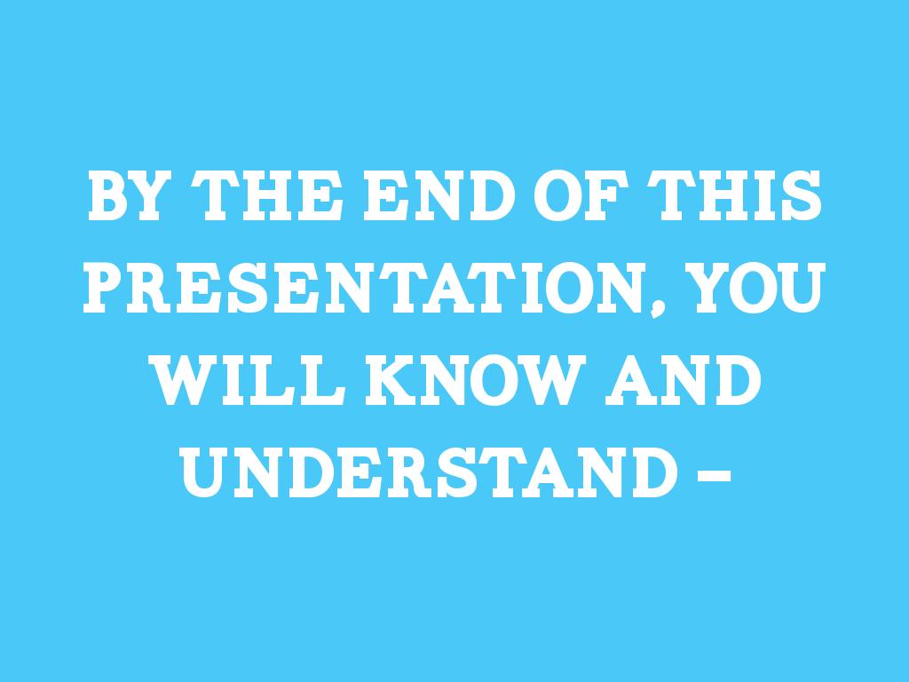 by the end of this presentation, you will know and understand -