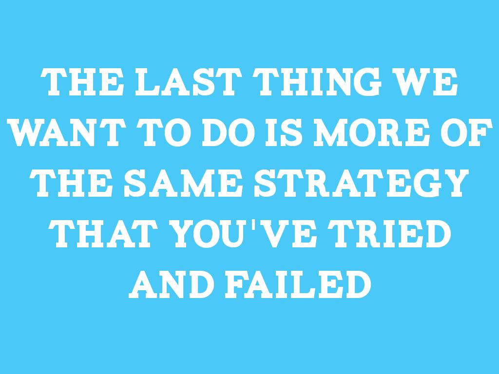 the last thing we want to do is more of the same strategy that you've tried and failed