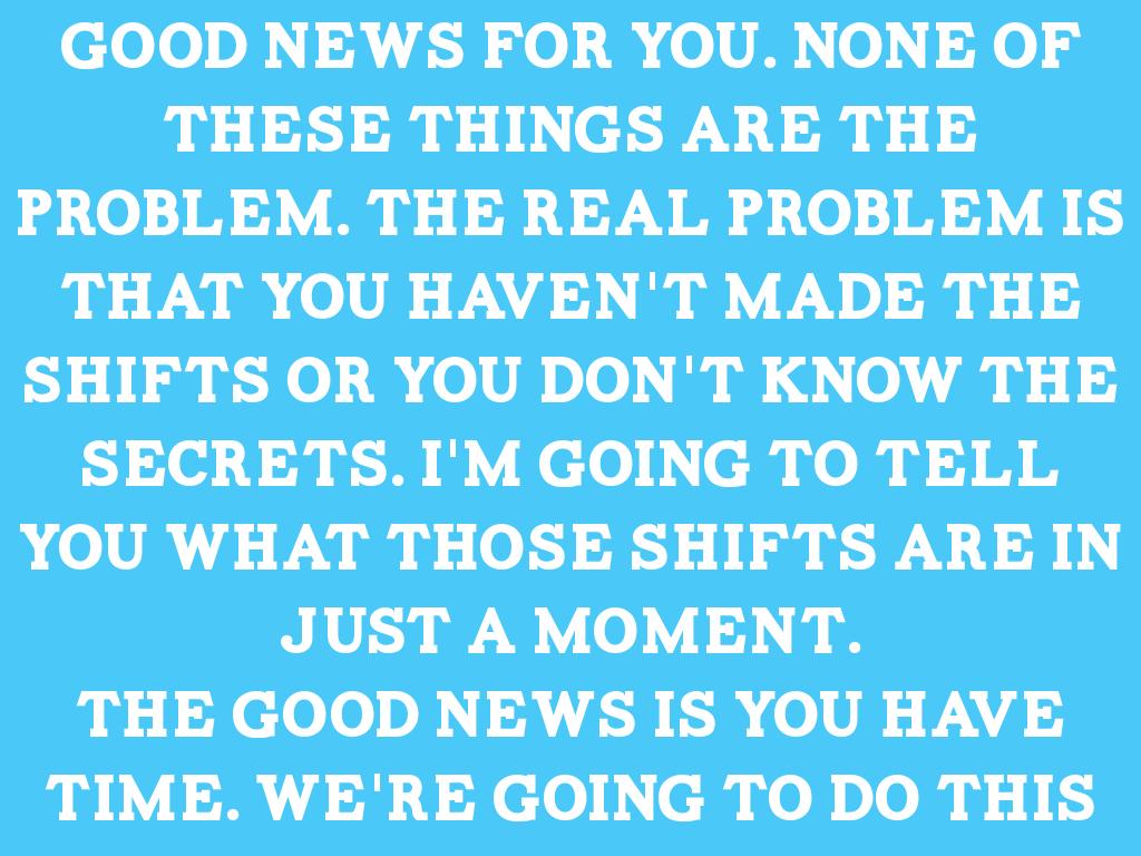 if this is how you feel , I have good news for you. none of these things are the problem. the real problem is that you haven't made the shifts or you don't know the secrets. I'm going to tell you what those shifts are in just a moment.