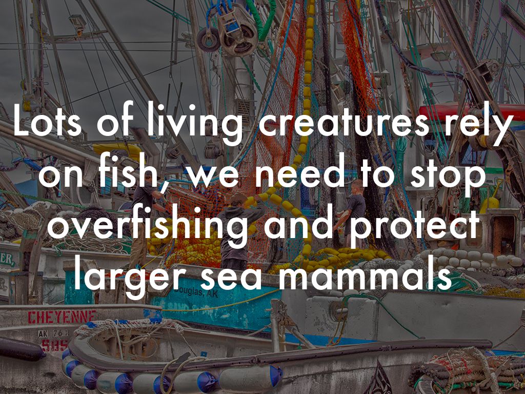 Lots of living creatures rely on fish, we need to stop overfishing and protect larger sea mammals