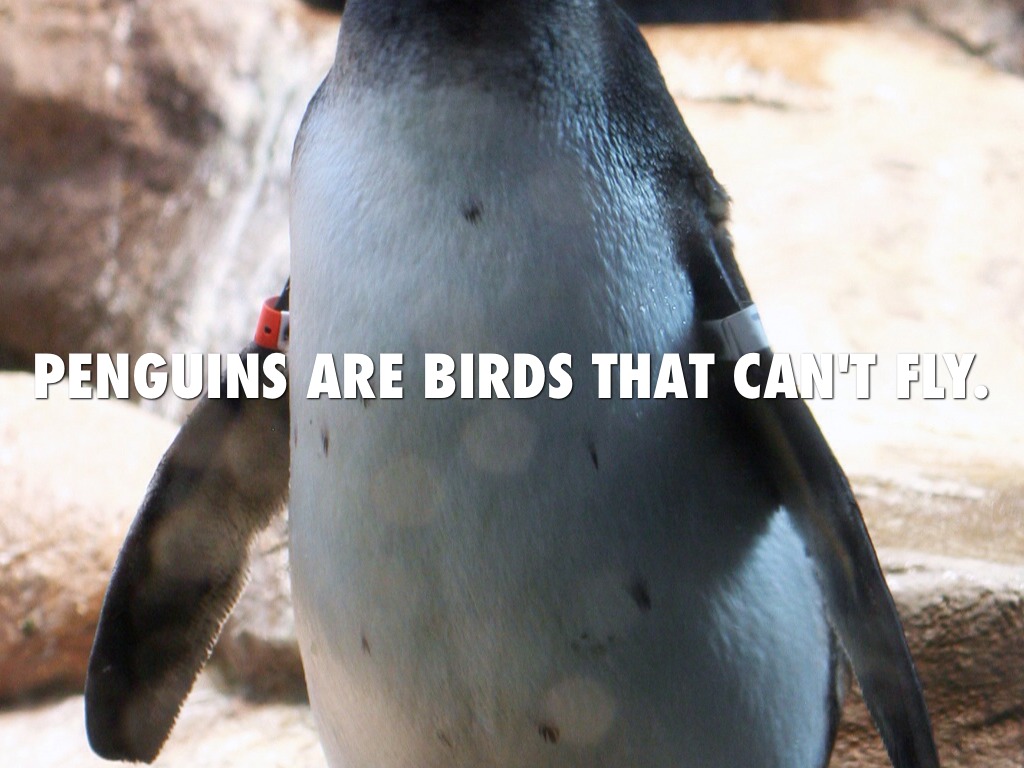 PENGUINS ARE BIRDS THAT CAN'T FLY.