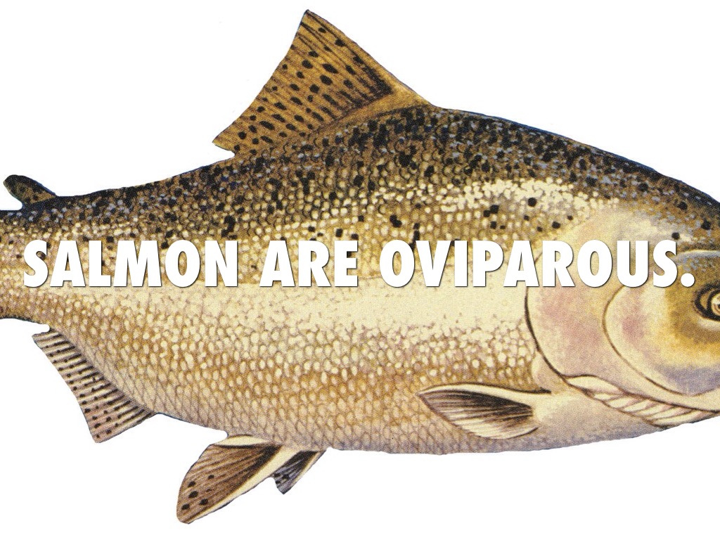 YOU CAN TELL HOW OLD A SALMON IS BY THE NUMBER OF RINGS ON ITS EAR.