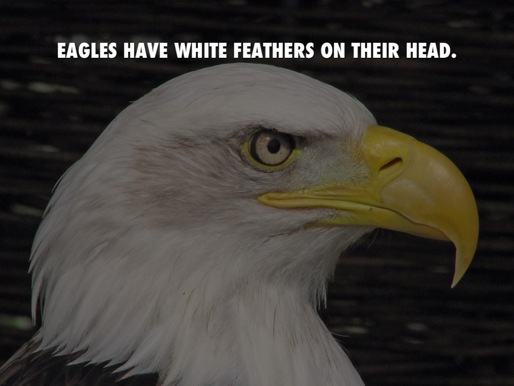 EAGLES HAVE WHITE FEATHERS ON THEIR HEAD.