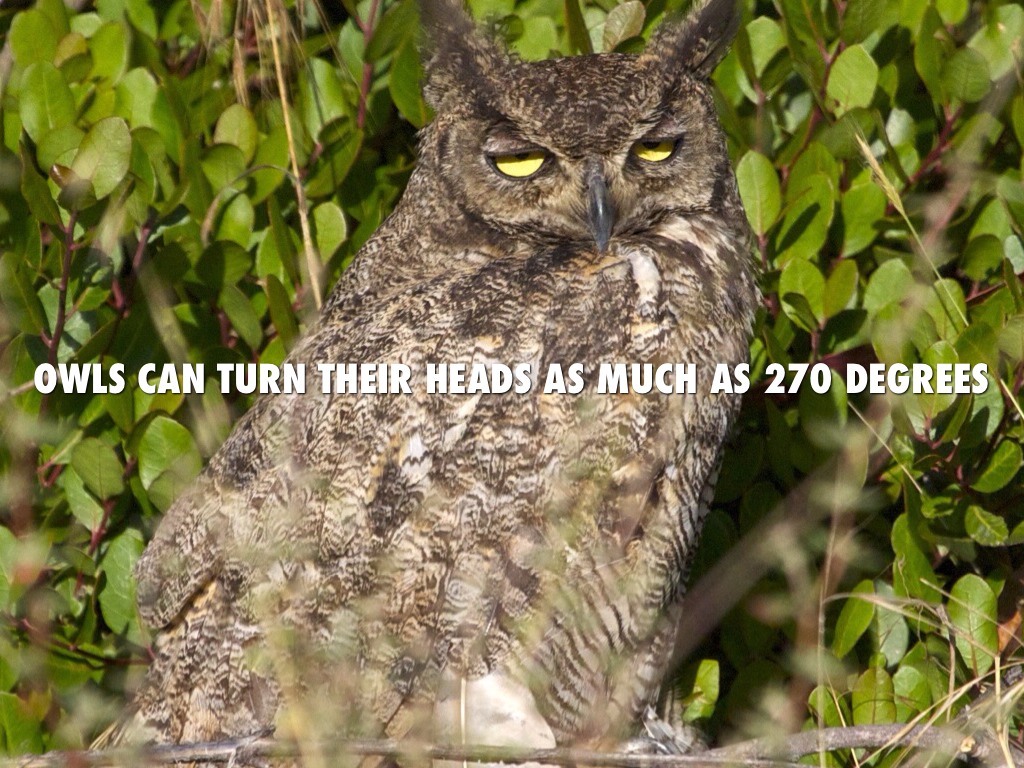 OWLS CAN TURN THEIR HEADS AS MUCH AS 270 DEGREES