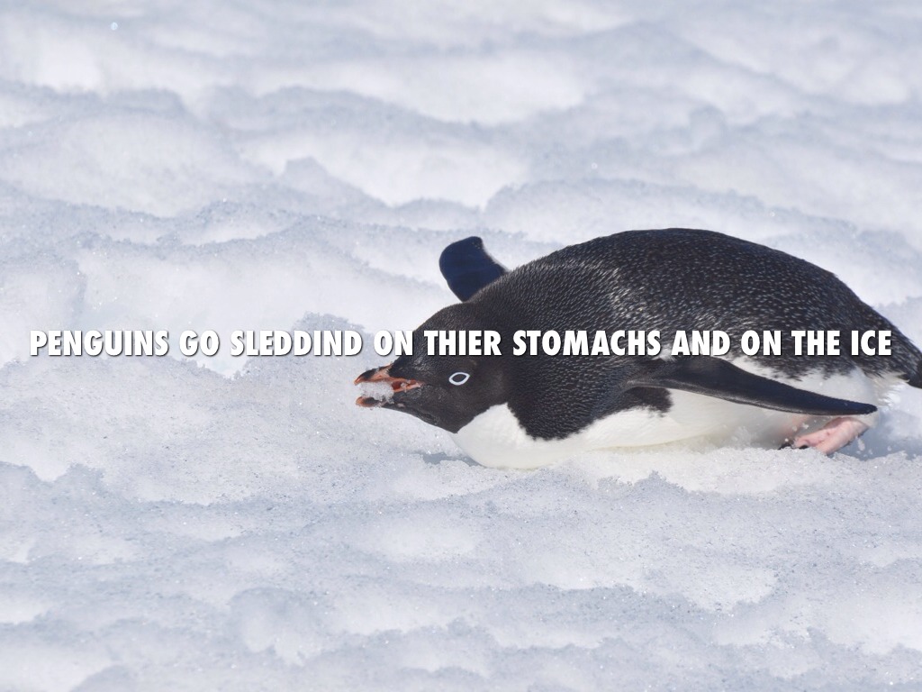 PENGUINS GO SLEDDIND ON THIER STOMACHS AND ON THE ICE