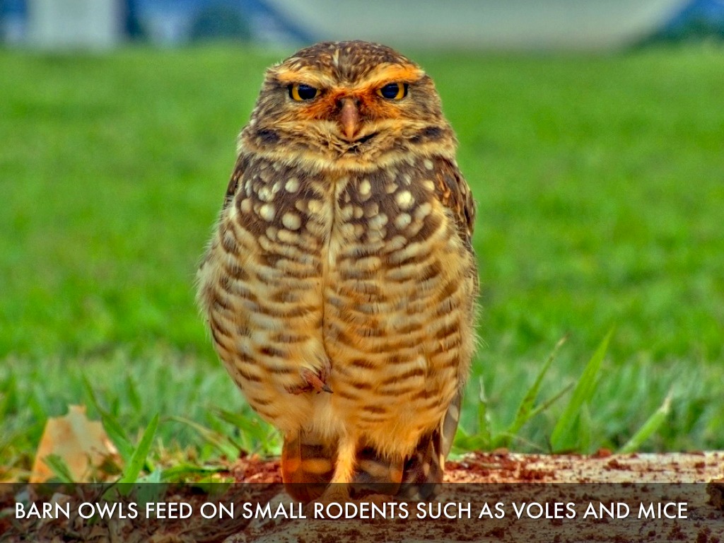 BARN OWLS FEED ON SMALL RODENTS SUCH AS VOLES AND MICE