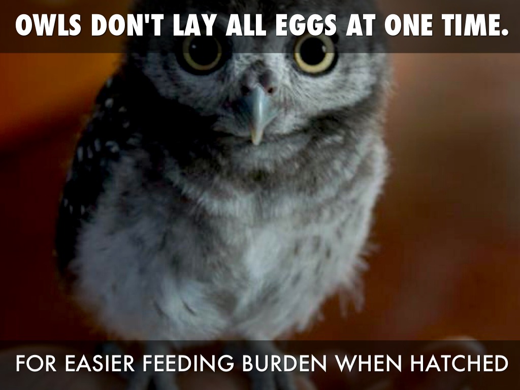 OWLS DON'T LAY ALL EGGS AT ONE TIME.
