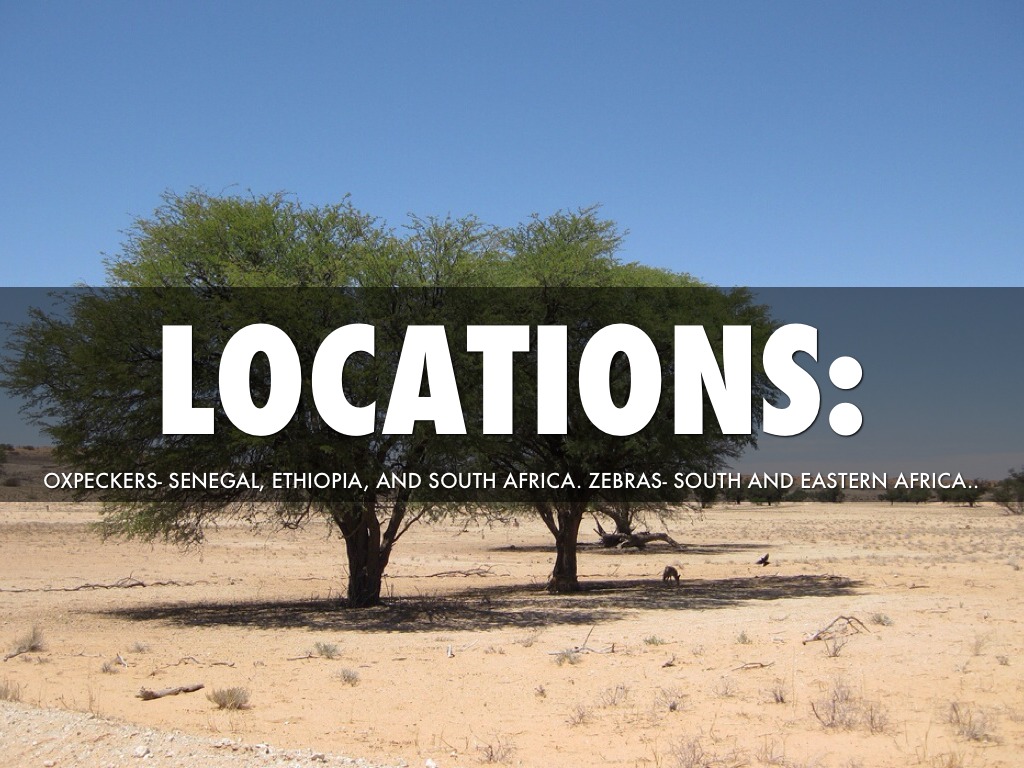 OXPECKERS- SENEGAL, ETHIOPIA, AND SOUTH AFRICA. ZEBRAS- SOUTH AND EASTERN AFRICA..