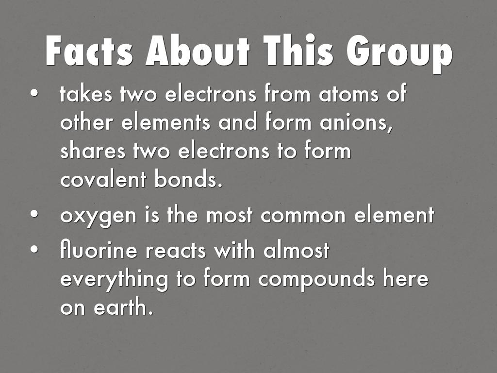 takes two electrons from atoms of other elements and form anions, shares two electrons to form covalent bonds.