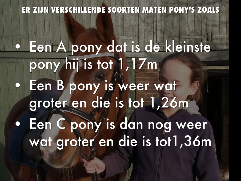 - Een A pony dat is de kleinste pony hij is tot 1,17m