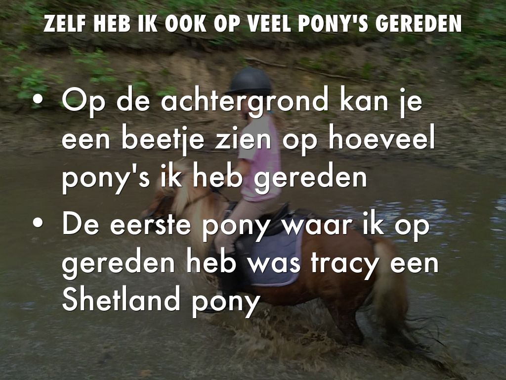 - De eerste pony waar ik op gereden heb was tracy een Shetland pony