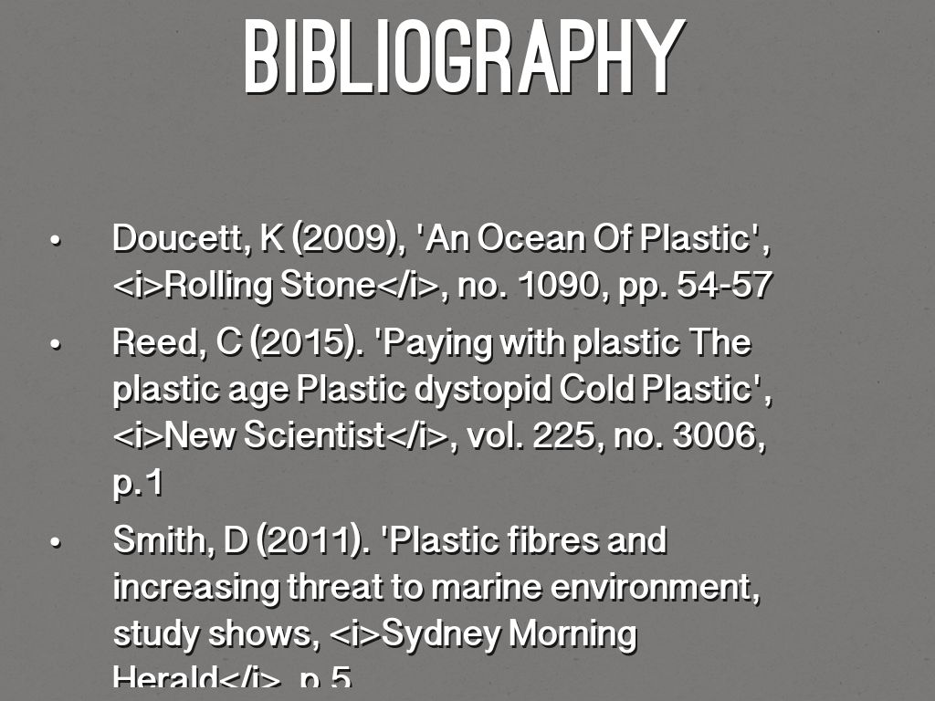 • Smith, D (2011). 'Plastic fibres and increasing threat to marine environment, study shows, Sydney Morning Herald, p.5
