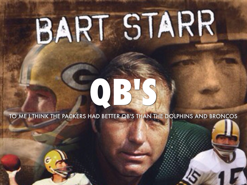 TO ME I THINK THE PACKERS HAD BETTER QB'S THAN THE DOLPHINS AND BRONCOS