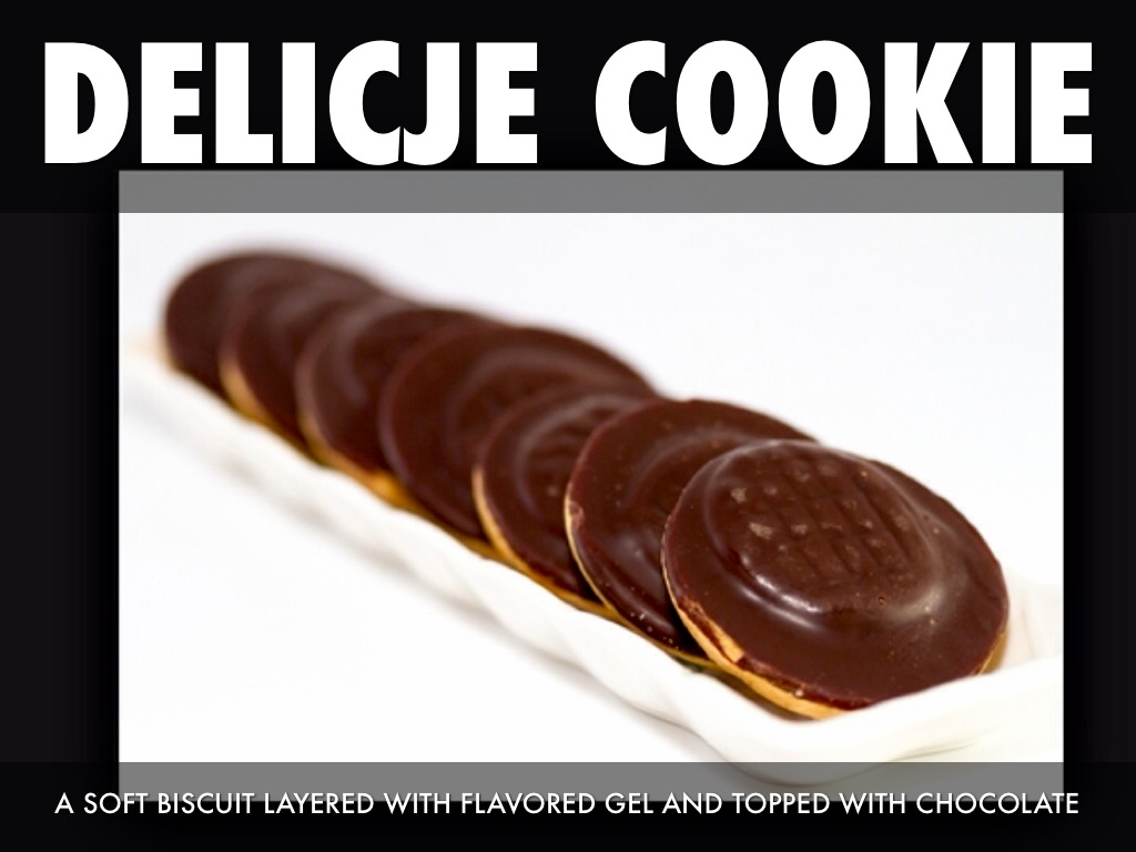 A SOFT BISCUIT LAYERED WITH FLAVORED GEL AND TOPPED WITH CHOCOLATE