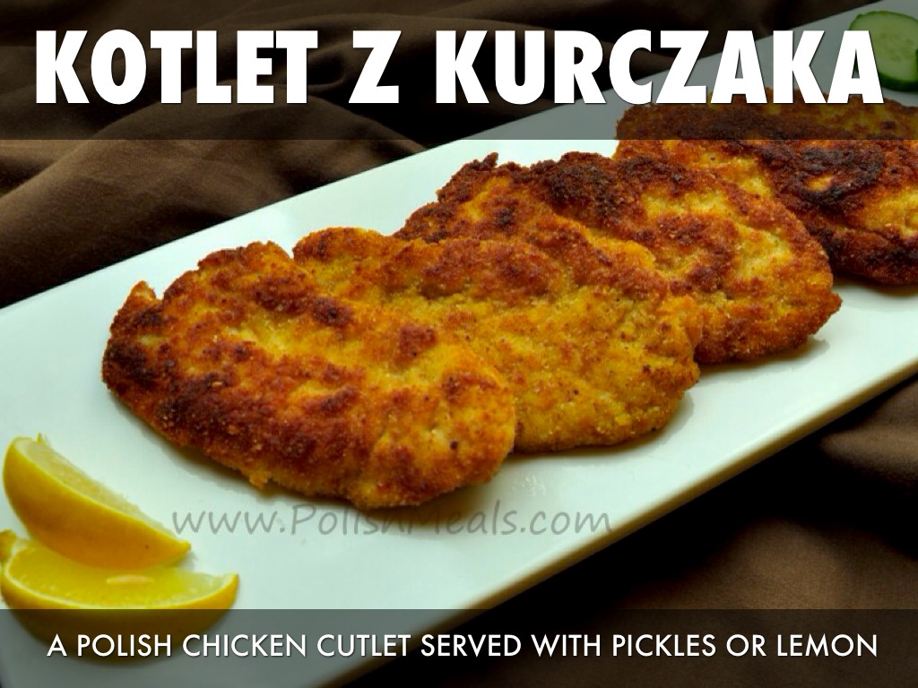 A POLISH CHICKEN CUTLET SERVED WITH PICKLES OR LEMON