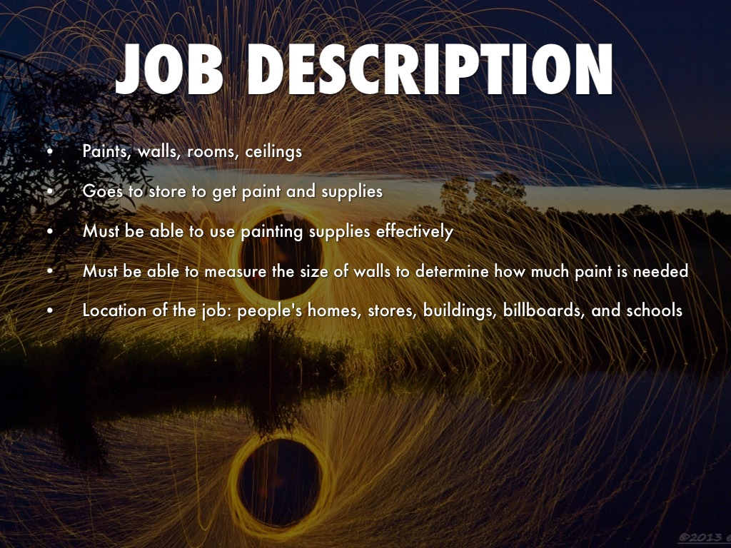 Location of the job: people's homes, stores, buildings, billboards, and schools