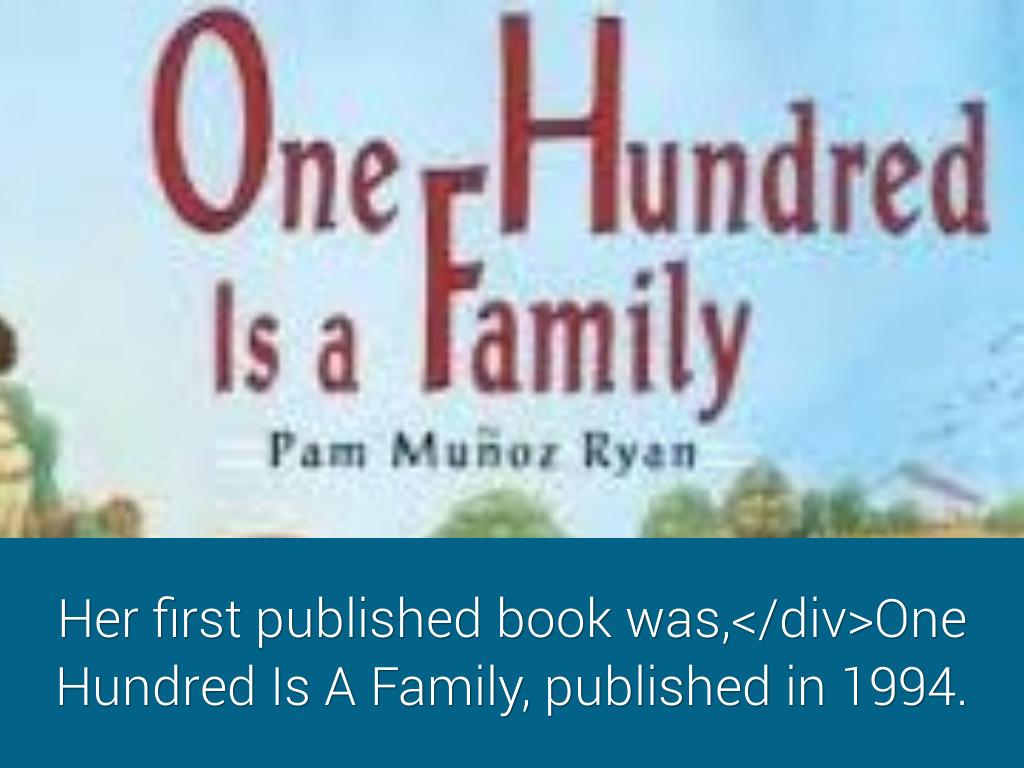 Her first published book was,One Hundred Is A Family, published in 1994.