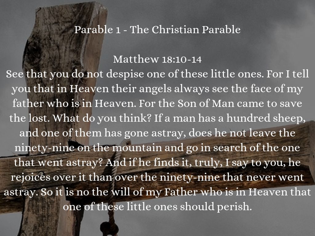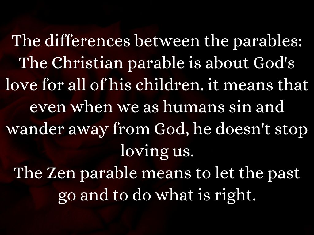The Christian parable is about God's love for all of his children. it means that even when we as humans sin and wander away from God, he doesn't stop loving us.