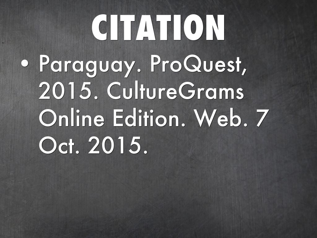 Paraguay. ProQuest, 2015. CultureGrams Online Edition. Web. 7 Oct. 2015.