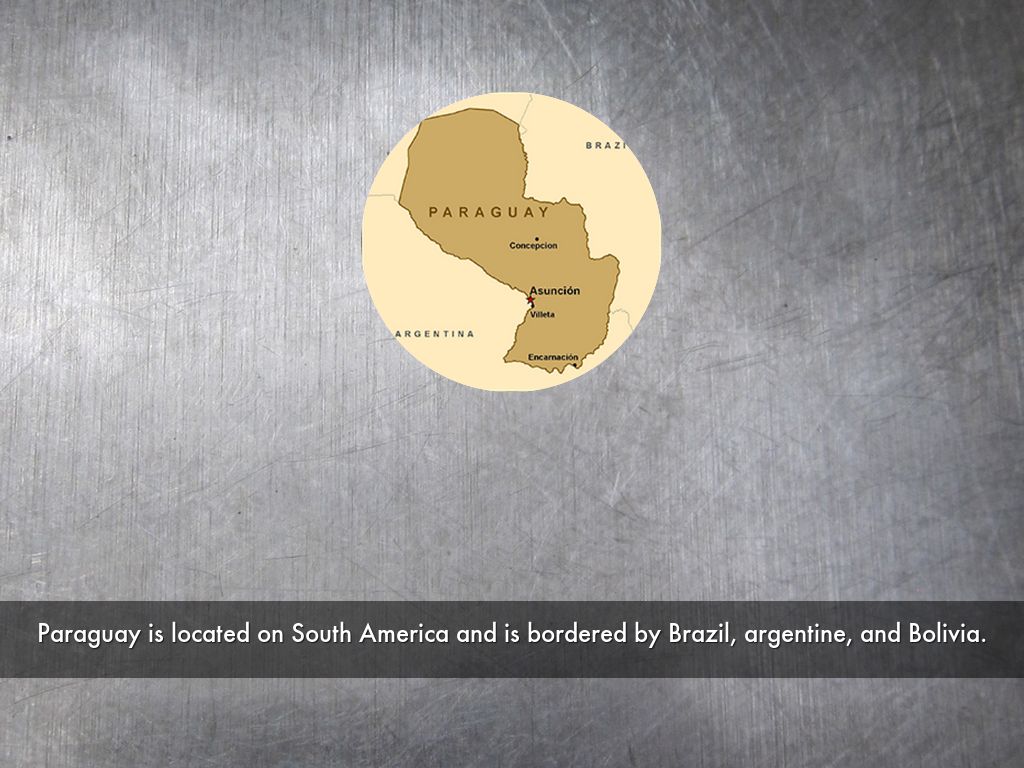 Paraguay is located on South America and bordered by Brazil, Argentina, and Bolivia.