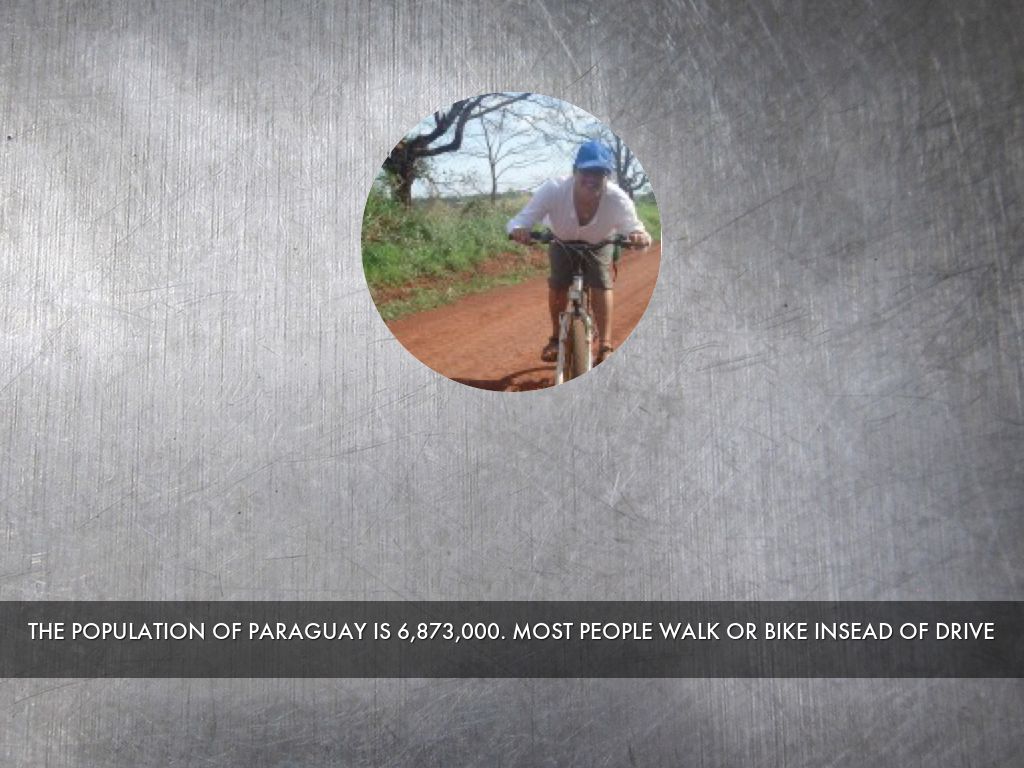 THE POPULATION OF PARAGUAY IS 6,873,000. MOST PEOPLE WALK OR BIKE INSEAD OF DRIVE