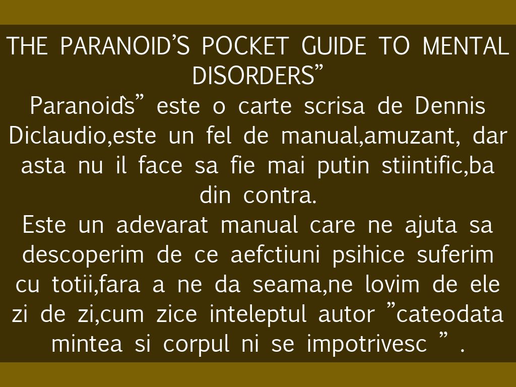 THE PARANOID’S POCKET GUIDE TO MENTAL DISORDERS”