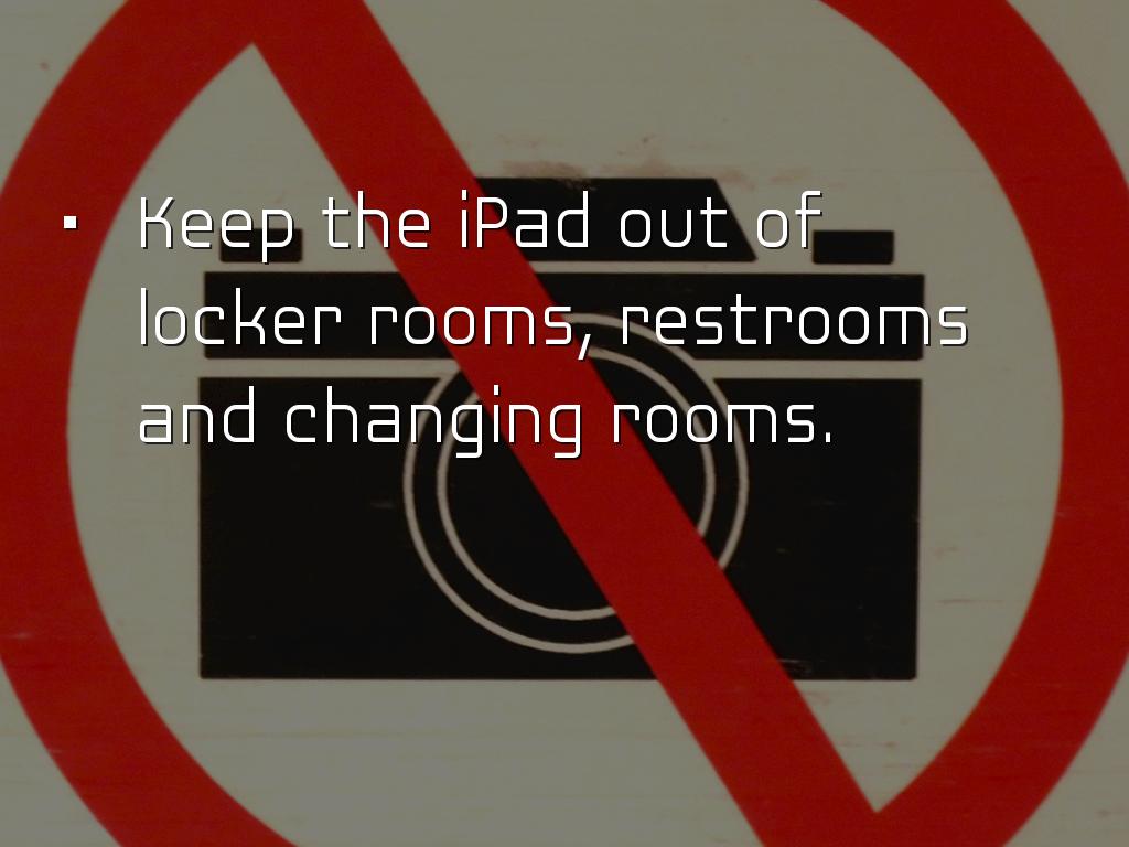 • Keep the iPad out of locker rooms, restrooms and changing rooms.