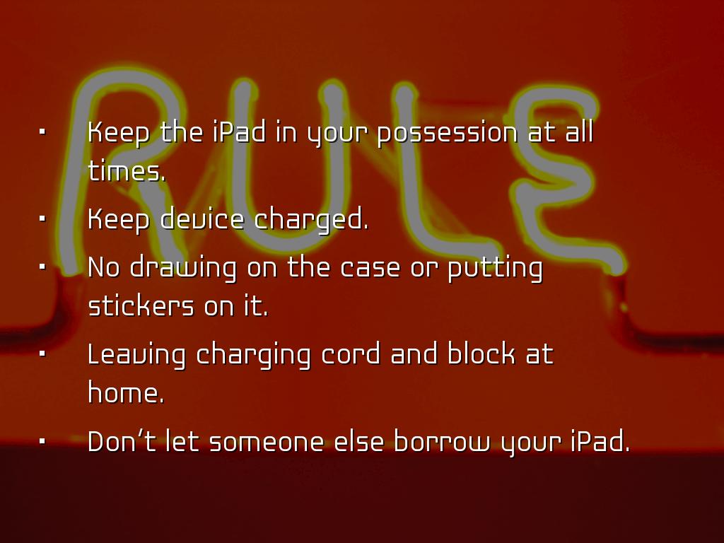 • Keep the iPad in your possession at all times.