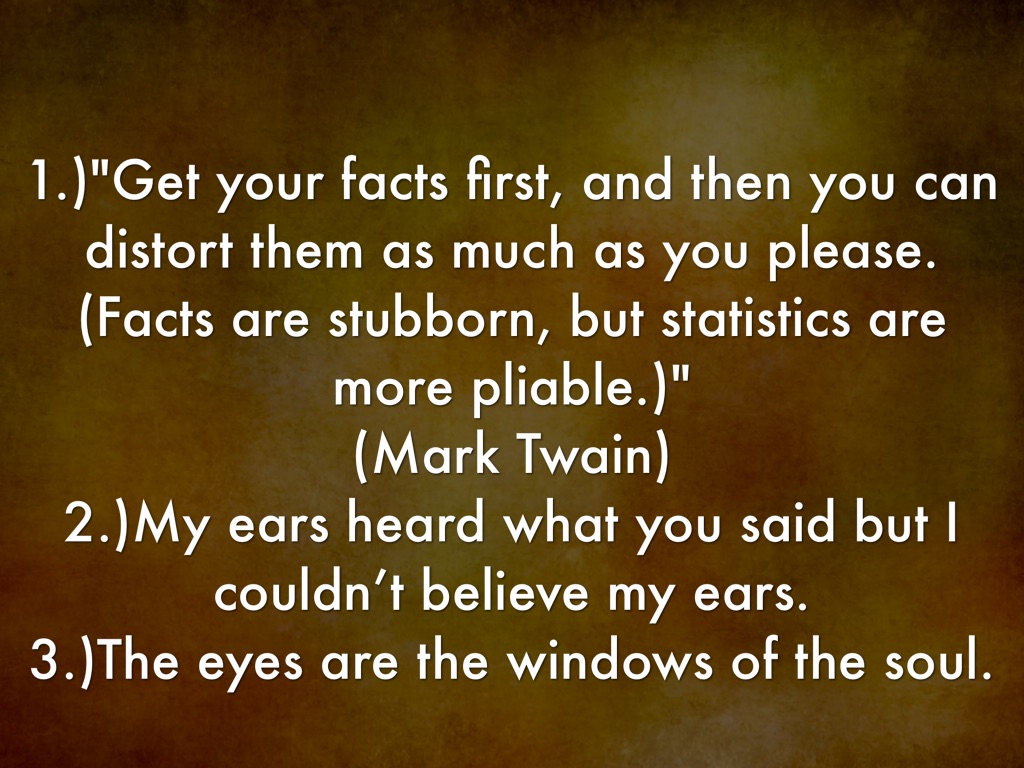 1.)"Get your facts first, and then you can distort them as much as you please. (Facts are stubborn, but statistics are more pliable.)"