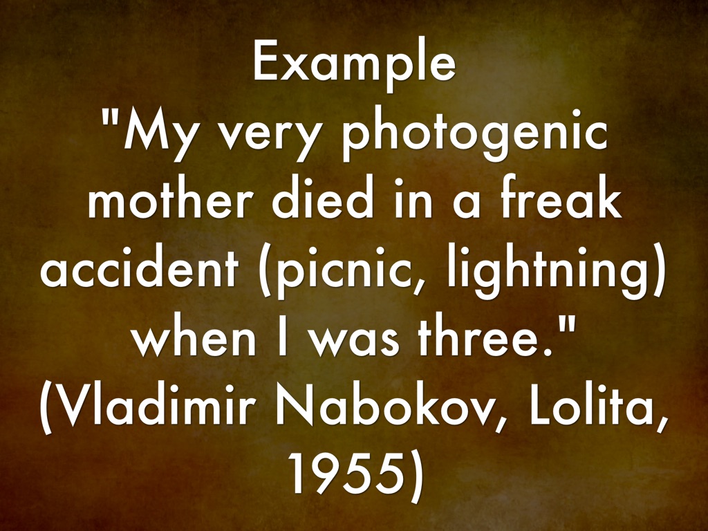 "My very photogenic mother died in a freak accident (picnic, lightning) when I was three."