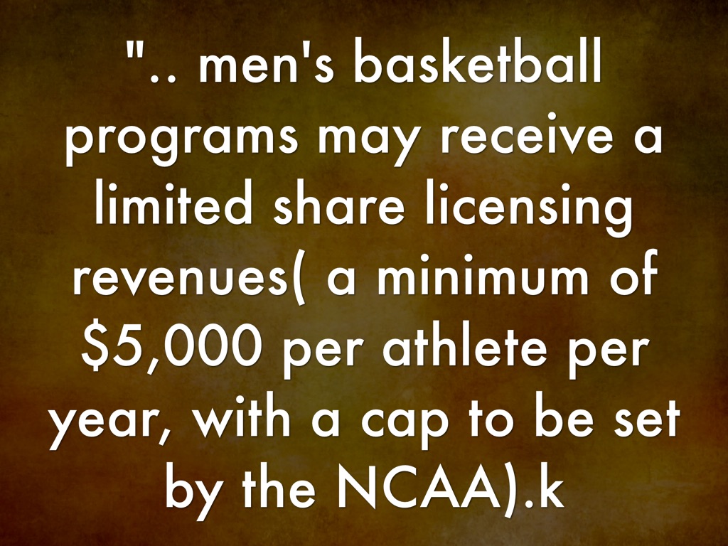 ".. men's basketball programs may receive a limited share licensing revenues( a minimum of $5,000 per athlete per year, with a cap to be set by the NCAA).k