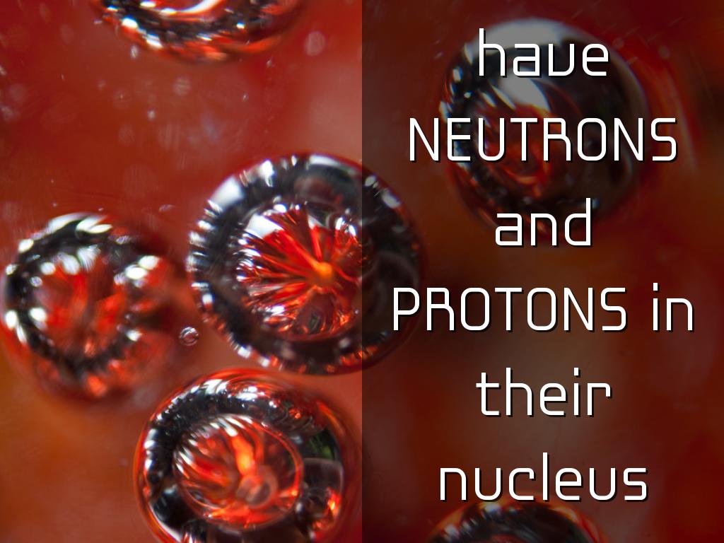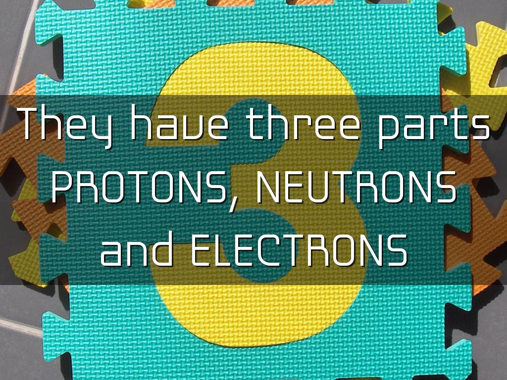 They have three parts PROTONS, NEUTRONS and ELECTRONS