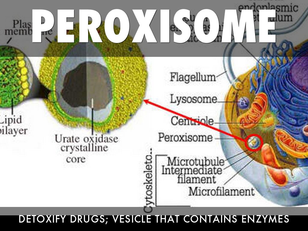 DETOXIFY DRUGS; VESICLE THAT CONTAINS ENZYMES