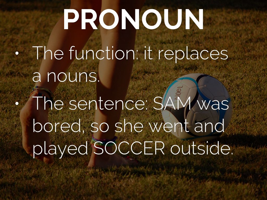 The sentence: SAM was bored, so she went and played SOCCER outside.