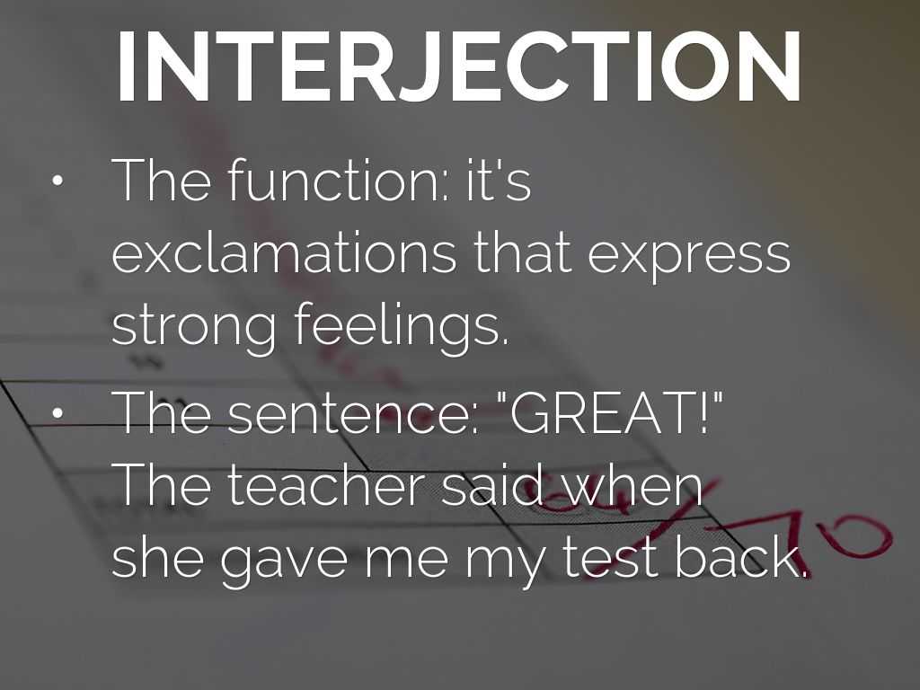 The sentence: "GREAT!" The teacher said when she gave me my test back.