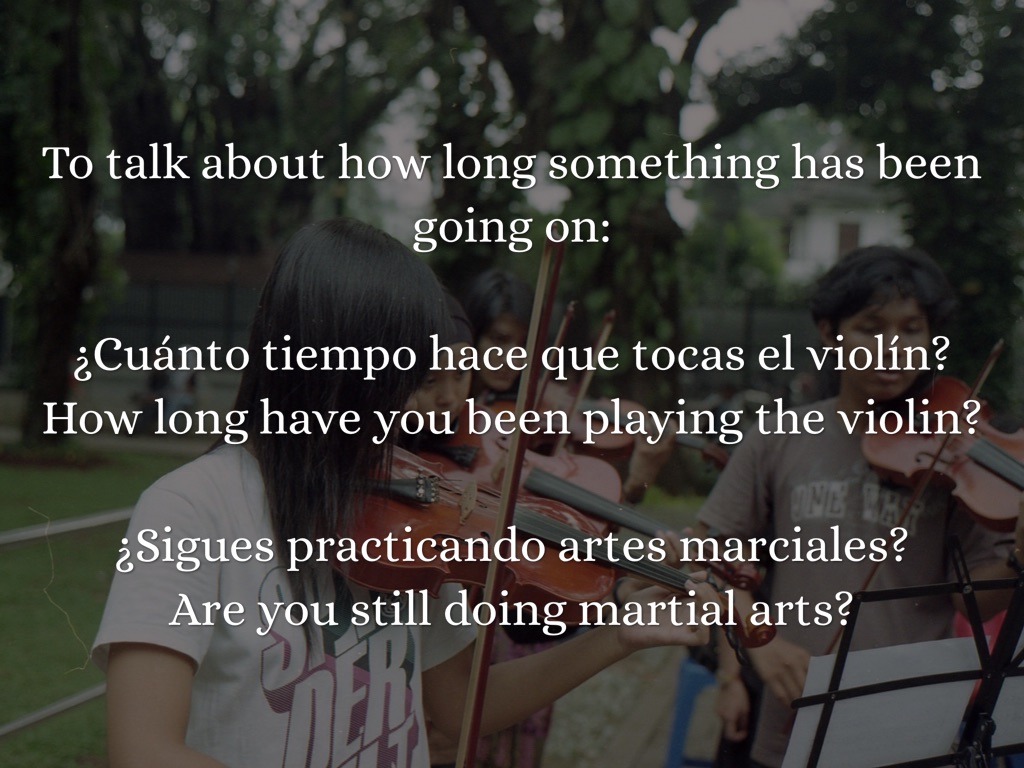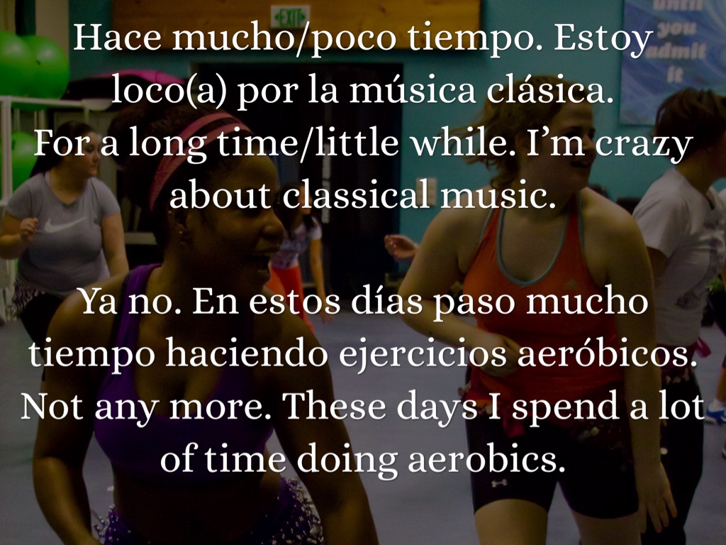 Hace mucho/poco tiempo. Estoy loco(a) por la música clásica.