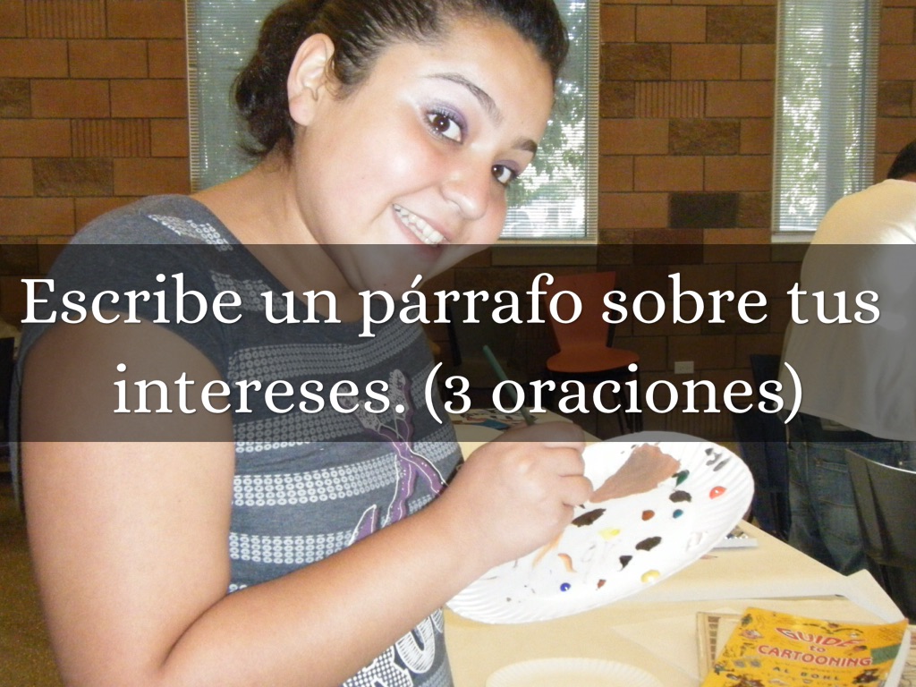 Escribe un párrafo sobre tus intereses. (3 oraciones)